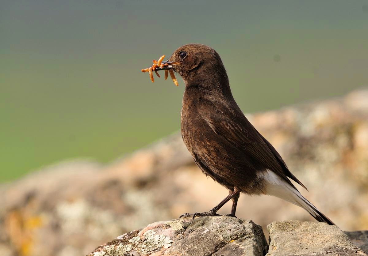 la hembra de collalba negra regresa acompañada, esta vez por el macho. Es